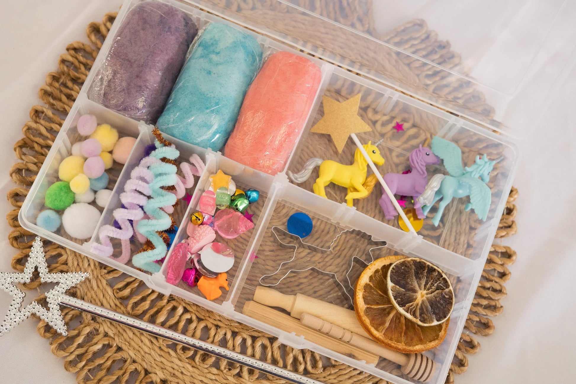 Sprinkle a little magic into your child’s next playtime. Your little ones magical wish awaits with this beautiful busy box including themed bits and pieces to keep your little one occupied for hours.